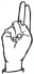 На ћирилици написано КОСТАДИН МИЛОЈКОВИЋ састоји се из 18 слова [?]. Исписано ћириличном једноручном азбуком за глувонеме: